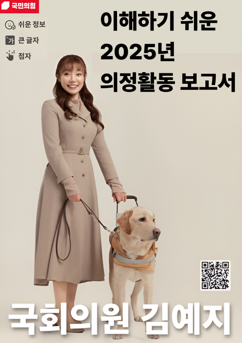 국회 보건복지위원회 소속 김예지 의원(국민의힘)이 시각·청각·발달장애인 등 모두를 위한 '2025 알기 쉬운 의정보고서'를 발간했다고 13일 밝혔다.