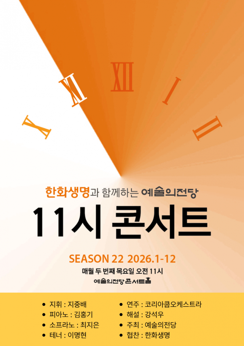 한화생명과 함께하는 예술의전당 <11시 콘서트> 2·3월 티켓 오픈 안내