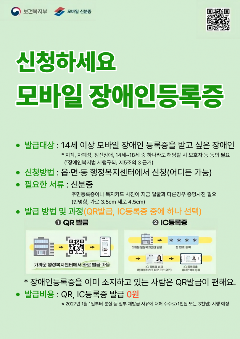 (정보제공) ‘스마트폰 속 장애인등록증’… 22일부터 전국 행정복지센터서 발급