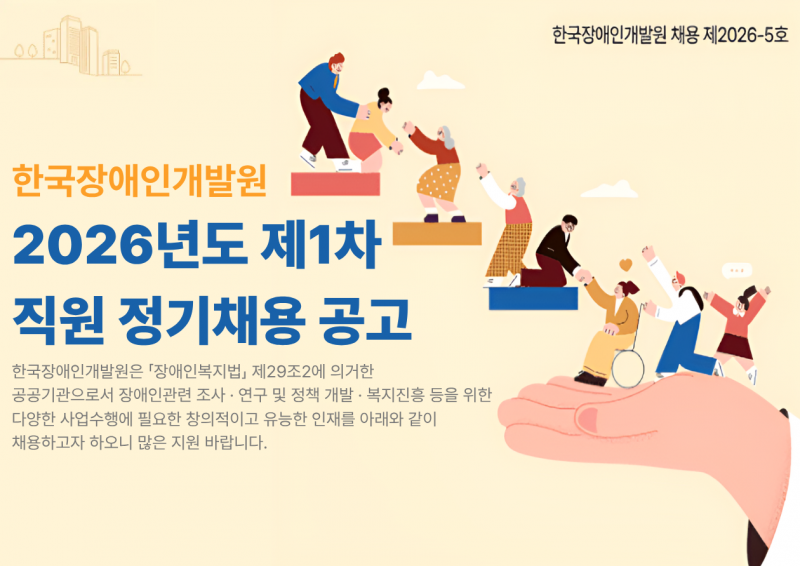 (정보제공) [오늘의 공기업 채용정보] 한국장애인개발원, 2026년도 제1차 신입직원 26명 채용