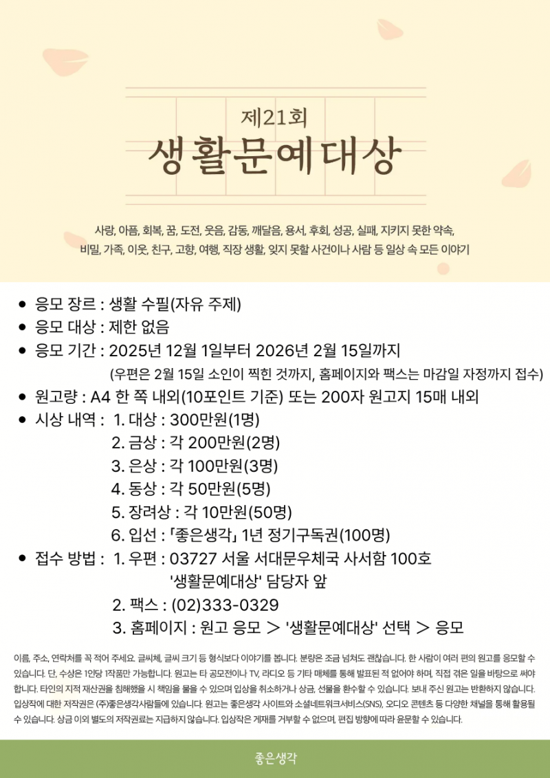 제21회 생활문예대상(2025. 12. 1. ~ 2026. 2. 15.)