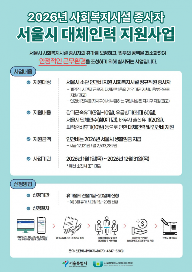 (정보제공) 2026년 서울시 사회복지시설 대체인력지원사업 실시 안내