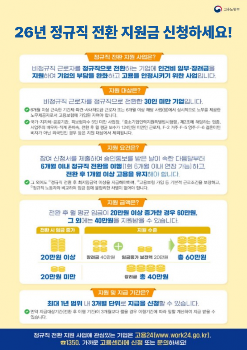고용노동부, 2026년 ‘정규직 전환 지원 사업’ 재개 발표