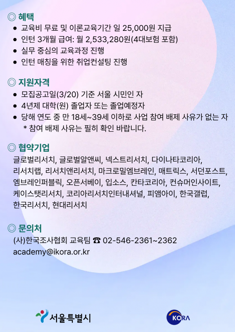 (정보제공) [한국조사협회] 2026 서울시 민간기업 참여형 매력일자리 기업맞춤형 리서처양성과정