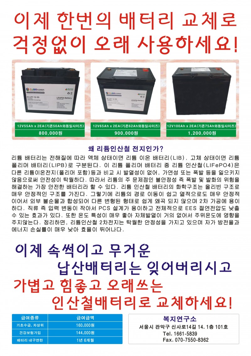 전동보조기기용 배터리 정부급여지원 교체 받으세요!