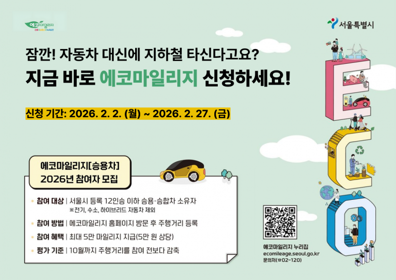 (정보제공) "차 덜 타면 5만원 드려요" 서울시, 에코마일리지 참가자 모집
