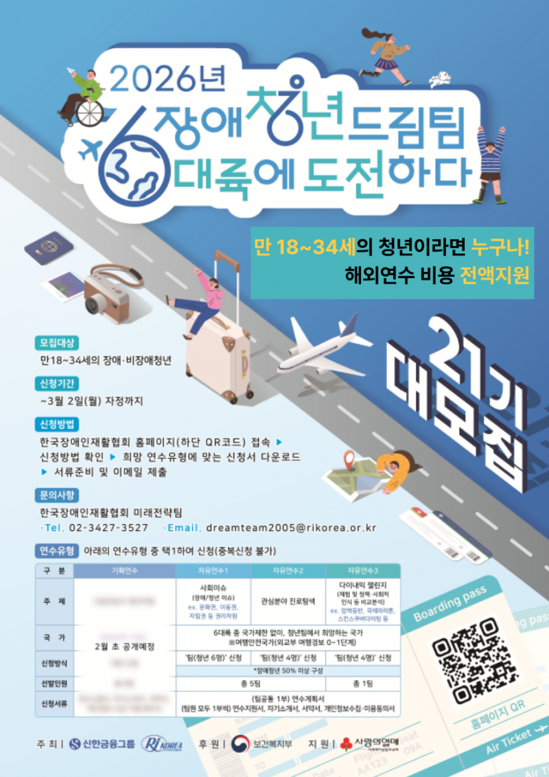 (정보제공) [장애청년드림팀] 청년 해외연수 프로그램, 2026년 21기 단원 모집(자유연수, ~3/2)