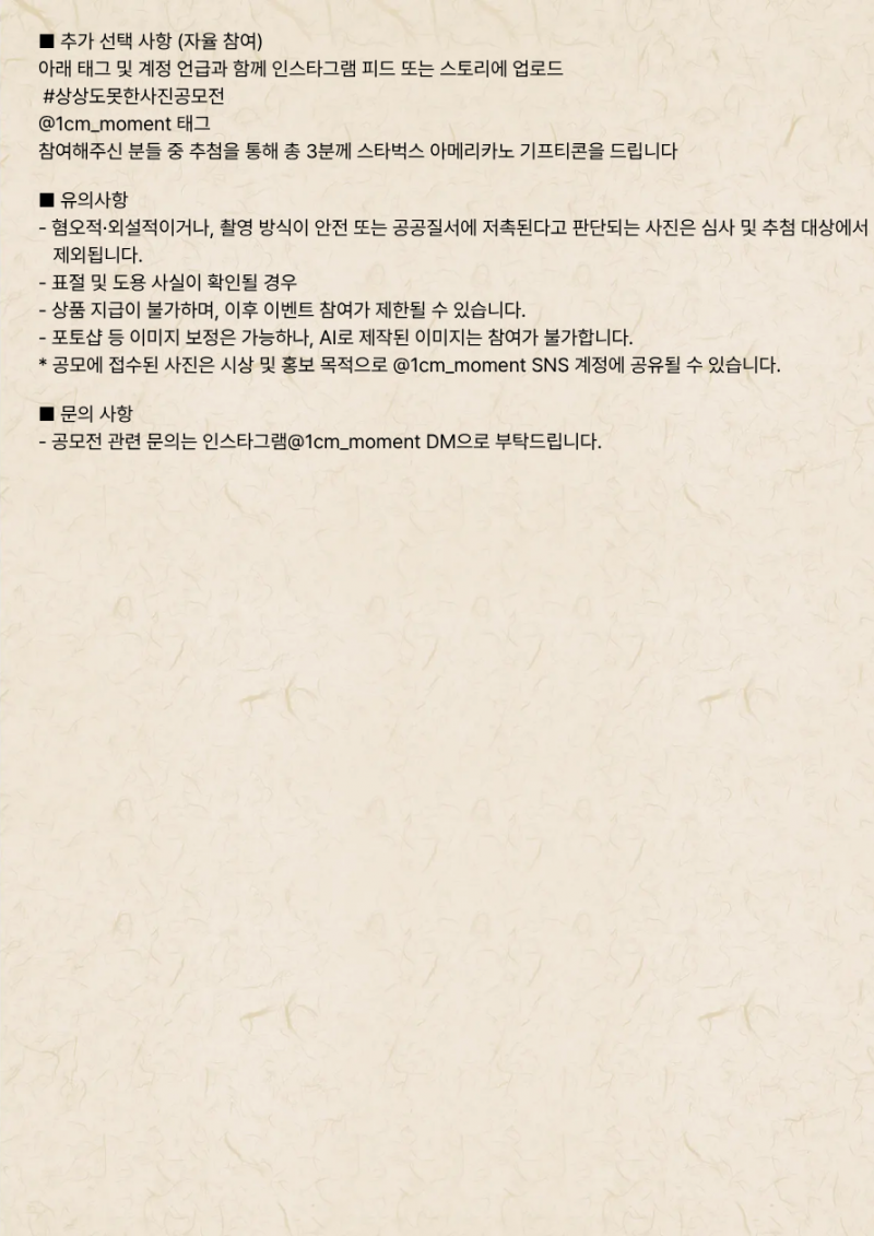 - 공모전 관련 문의는 인스타그램@1cm_moment DM으로 부탁드립니다.