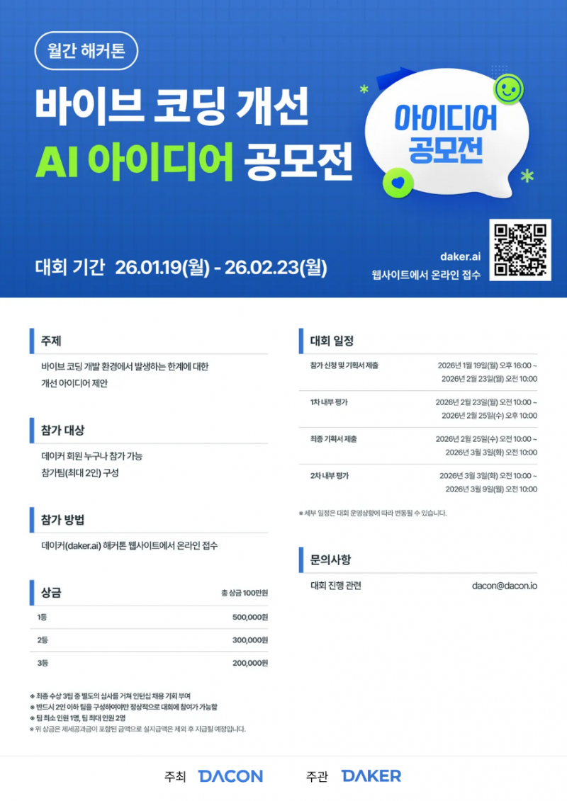 대회 홈페이지 (https://daker.ai/public/hackathons/vibe-coding-improvement-ai-idea-competition) 참고