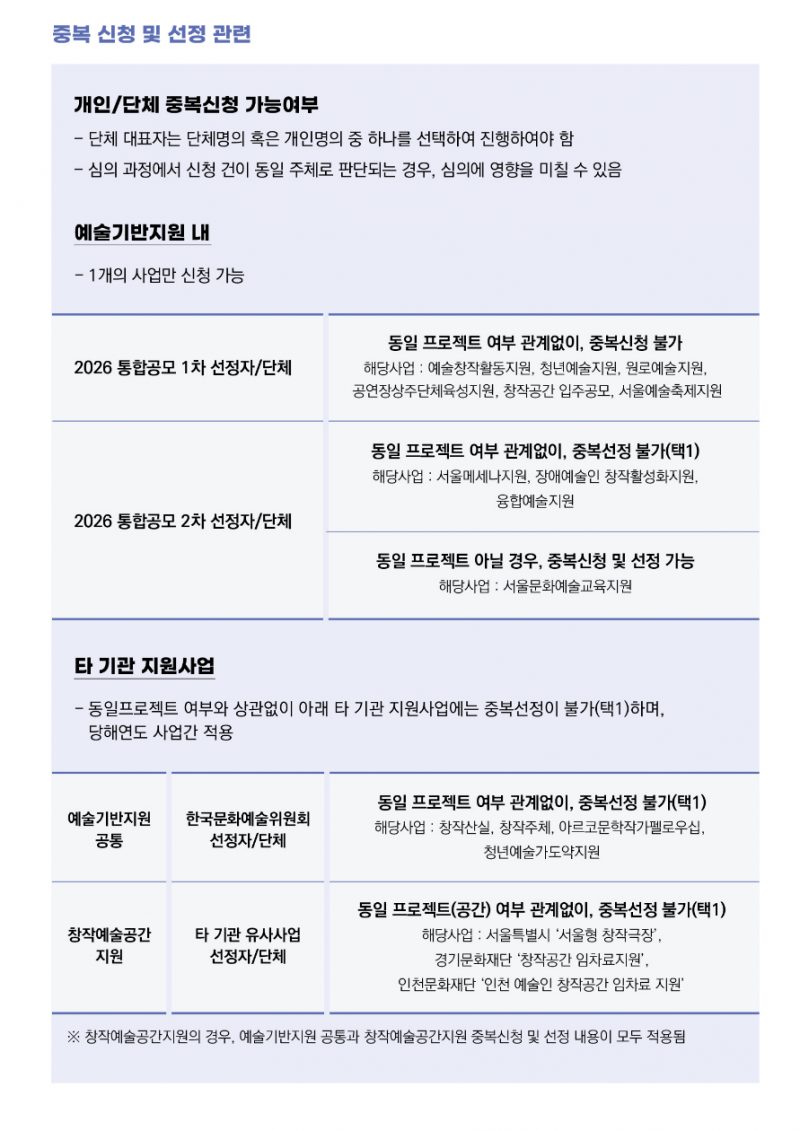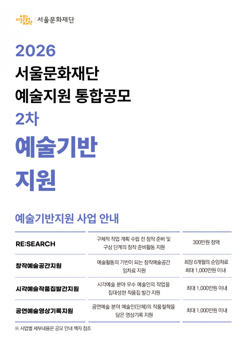 2026 서울문화재단 예술지원 통합공모 2차_예술기반지원