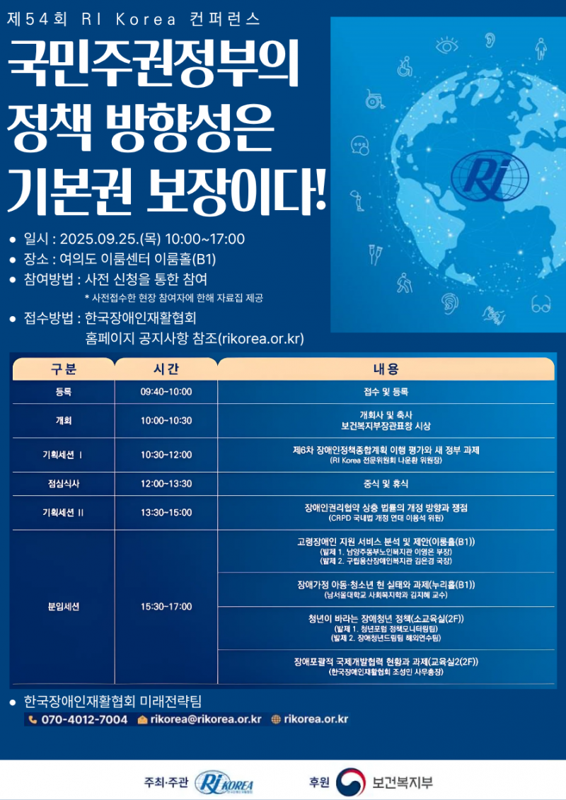 (정보제공) 제54회 RI Korea 컨퍼런스 국민주권정부의 정책 방향성은 기본권 보장이다!