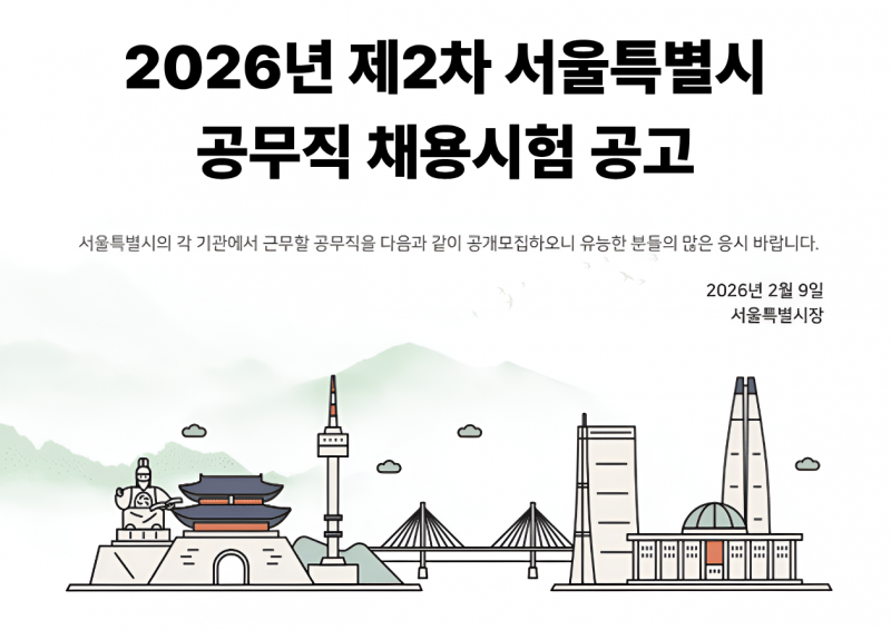 서울특별시에서 2026년 제2차 공무직 신입직원을 공개채용하고 있다.