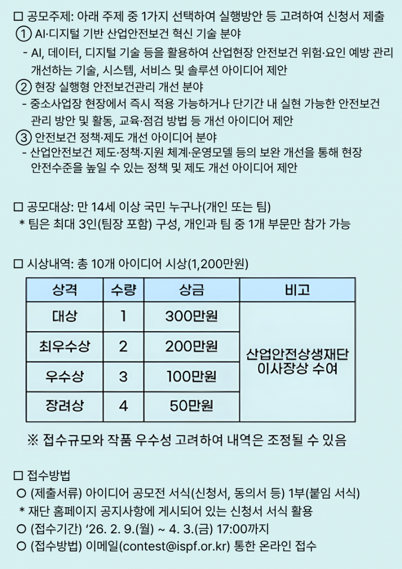 (정보제공) 2026 산업안전보건 혁신 아이디어 공모전