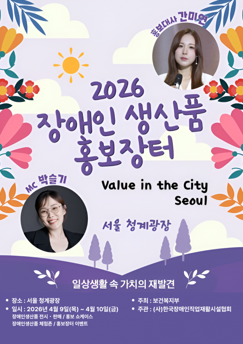 보건복지부가 주최하고 한국장애인직업재활시설협회(이하 협회)가 주관하는 '2026년 장애인생산품 홍보장터'가 오는 9일부터 10일까지 서울 청계광장에서 열린다.
