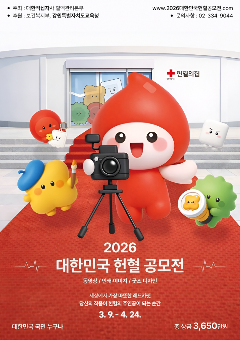 헌혈의 중요성을 알리고, 국민적 참여를 확대하기 위한 ‘2026년도 대한민국 헌혈공모전’이 개최되었습니다.