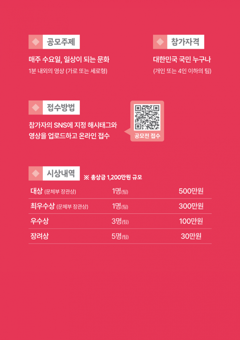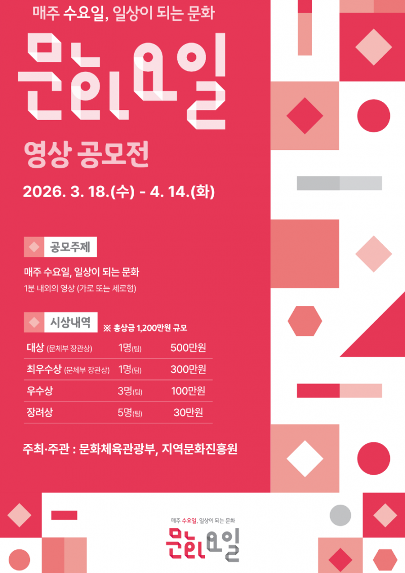 (정보제공) [문화체육관광부] 문화요일 영상 공모전 (~4/14)