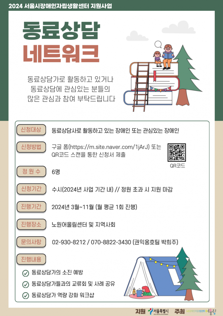 '2024 동료상담 네트워크' 프로그램 참여자를 모집안내<마감>