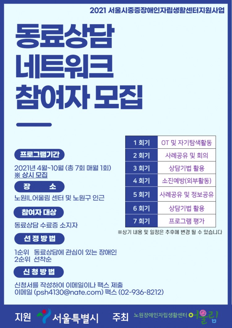 2021년 동료상담 네트워크 참여자를 모집합니다. 많은 관심 바랍니다.