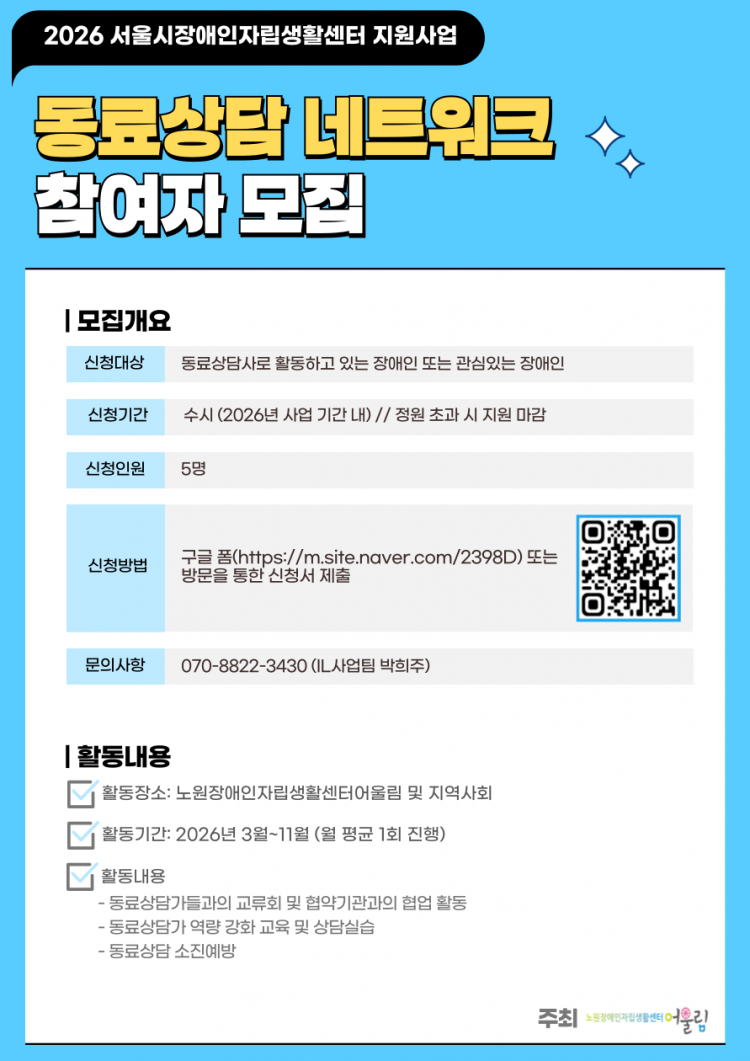 '2026 동료상담 네트워크' 프로그램 참여자 모집 안내♡