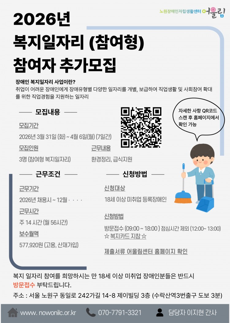 << 2026년 장애인복지일자리 참여형 참여자 모집>>