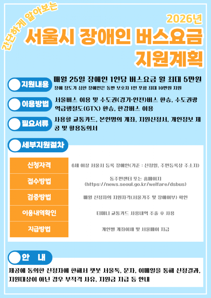 (정보제공)간단하게 알아보는 2026년 서울시 장애인 버스요금 지원계획