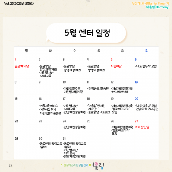 노원장애인자립생활센터어울림 5월 웹진 페이지 정보 작성자 노원IL어울림 작성일23-05-18 11:46 조회5,122회 댓글0건 관련링크 본문 노원장애인자립생활센터어울림 5 월 웹진 클릭 → https://url.kr/1u58ze 댓글목록 등록된 댓글이 없습니다. 다음글 이전글 목록